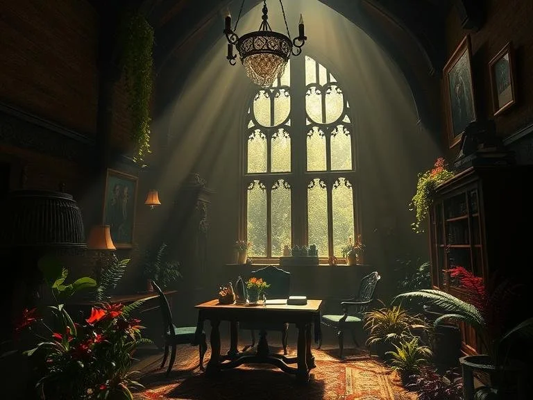 Life has pressed her into shadows, but that’s where the best stories bloom—along the edges of windows, in the quiet between walls, inside the hush of books that stare back when you read them. Her world is a manor with eyes and ears. The flowers bite, but they bloom. And in the enchanted library, there’s a hammock strung between logic and madness where she can swing and read in peace.